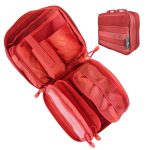 3.[IDEAL SIZE] This bag is designed to carry critical first aid supplies while maintaining a light weight. It fits day packs, backpacks, purses, glove boxes, car storage compartments, go bags, or emergency kits. It is perfectly sized for first aid supplies. At 9.5 x 7.5 x 4.5 inches the bag will fit nearly any container or strap to the outside of compatible molle bags.